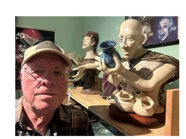 Rick spent a lifetime working in the arts, including: graphic arts, the television industry, murals, pottery, sculpture and as an educator, teaching art many years. No matter what my art "day job" was I still did my sculpture with whatever material I had available. I have always had sculpture as my art, my first love, anything 3-D" my Muse.